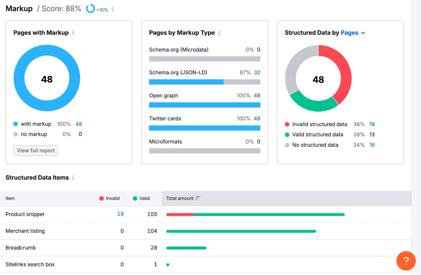 You’ll see the markup score – which is based on the “Invalid structured data items” check and uses the Site Health algorithm.