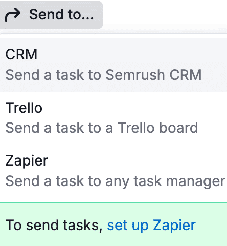 You can send the task directly from Semrush, either to the Semrush CRM, your Trello board, or through Zapier.